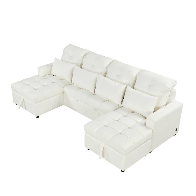 Oversized U - Shaped Sofa Versatile Sectional Sofa Pull Out Sofa Bed With Double Storage Chaise Lounges And 2 USB Ports For Living Room - Beige