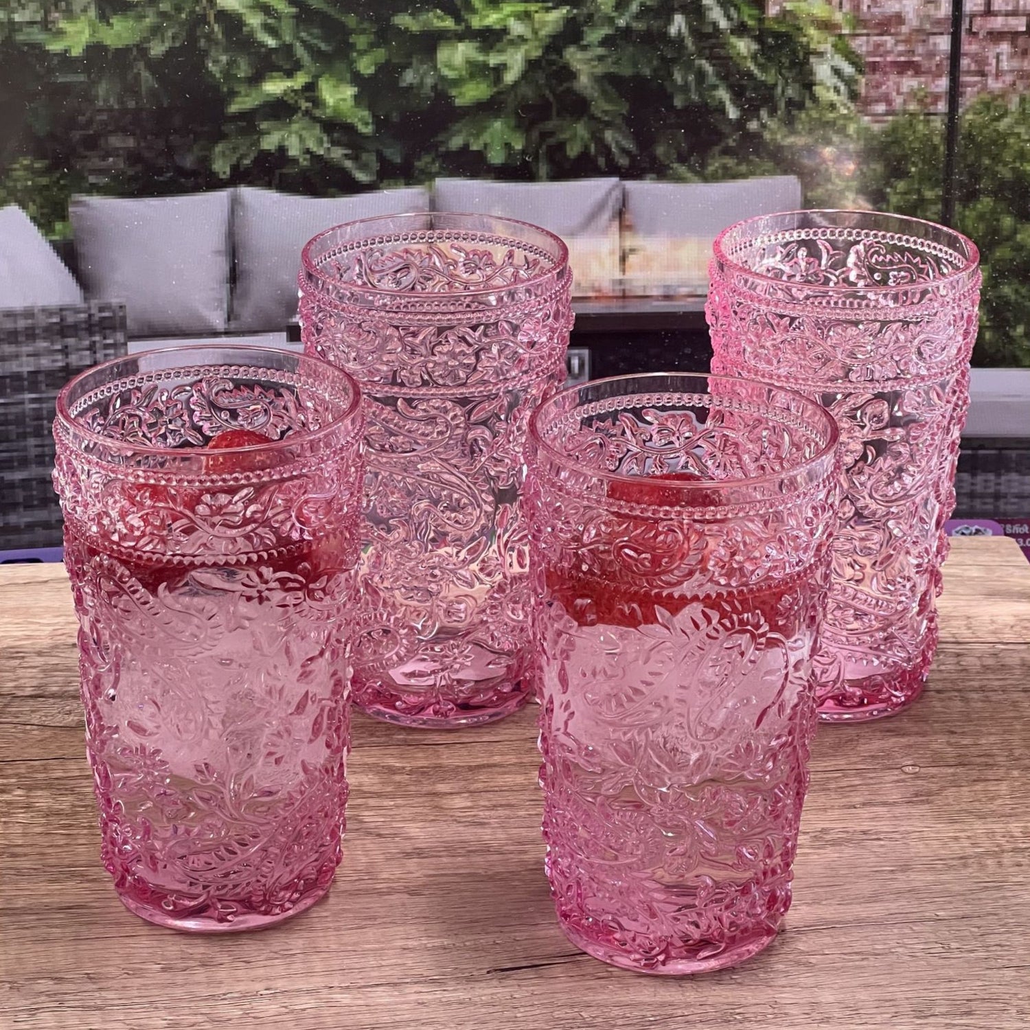 Paisley - Leading Ware Acrylic Glasses Drinking (Set of 4) Hi Ball, Bpa Free, 17Oz - Pink