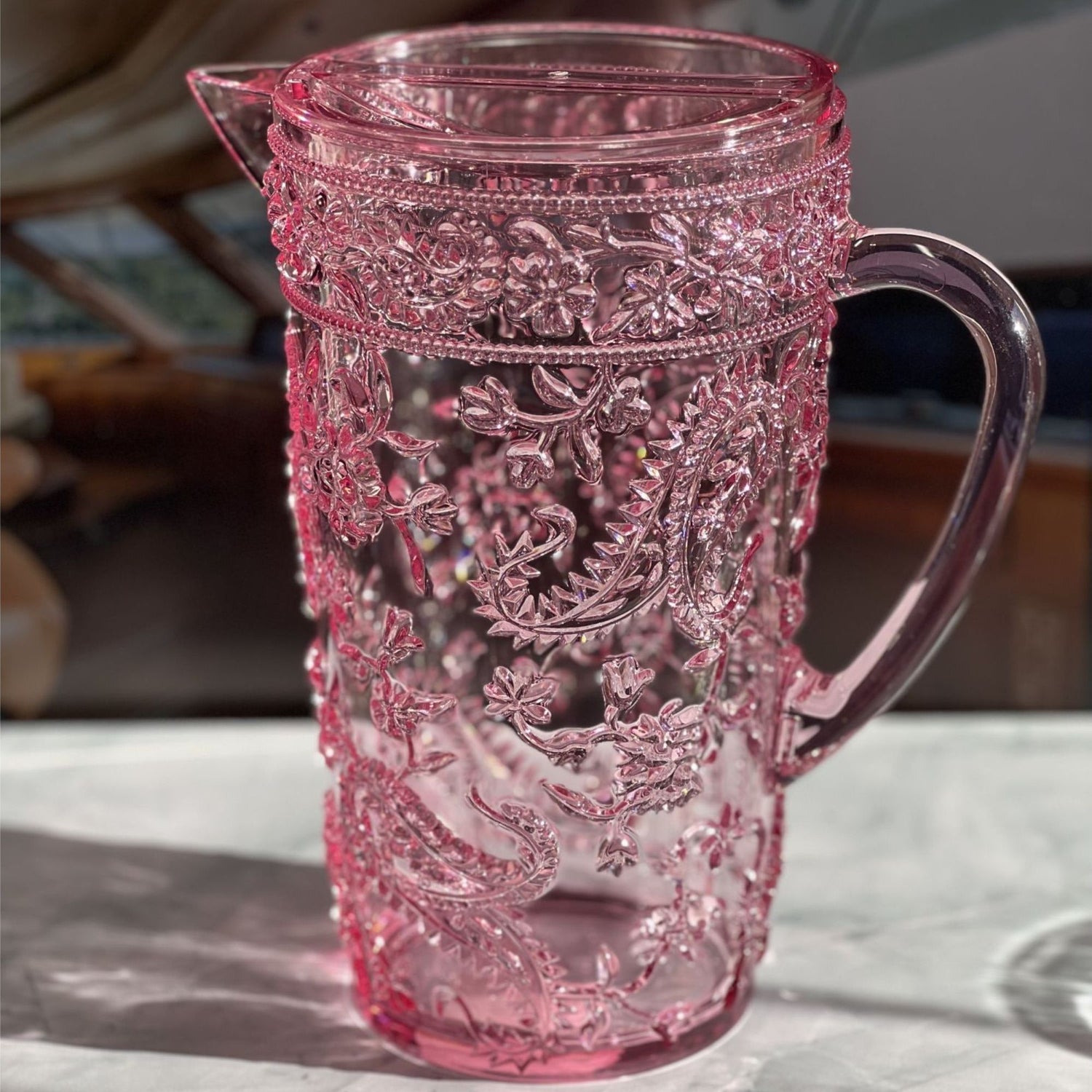 Paisley - Unbreakable Plastic Water Pitcher With Lid And Spout, 2.5 Quarts, Bpa Free - Pink