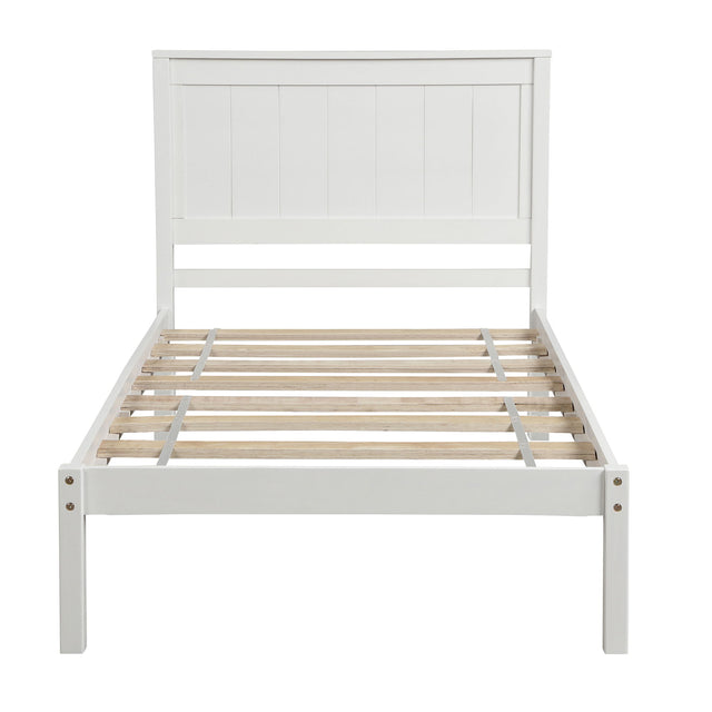 Platform Bed Frame With Headboard, Slat Support, No Box Spring Needed, Twin - White
