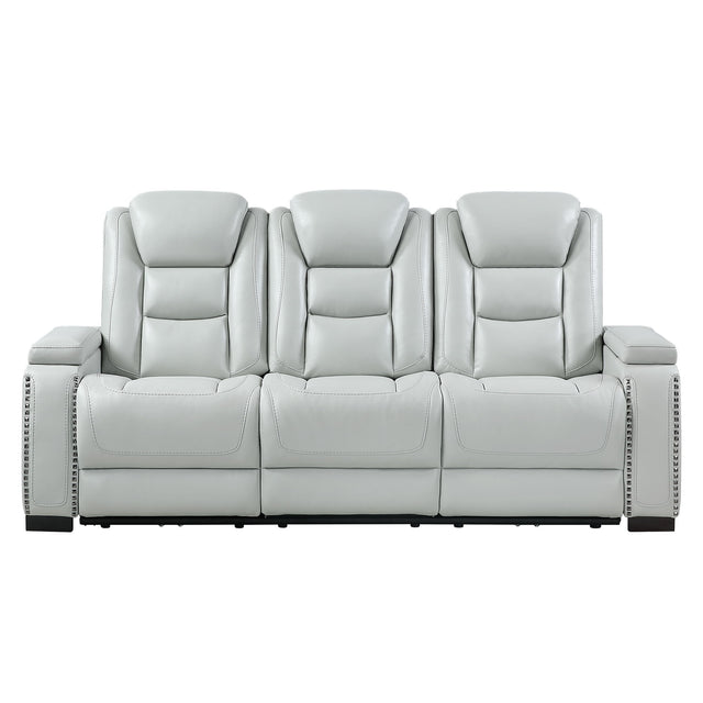 Power Sofa With USB LED Headrest, Bookshelf Arms, And Storage - Grey