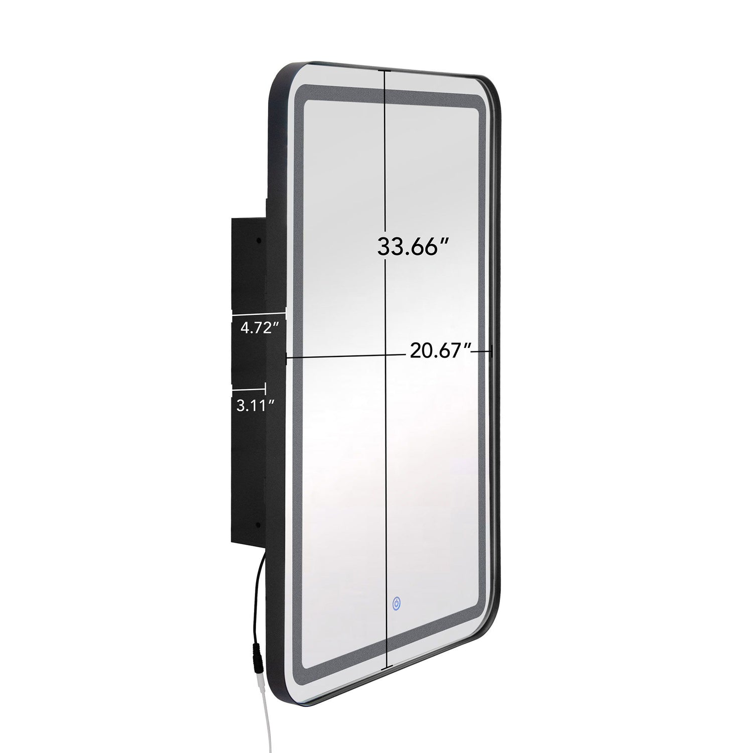 Rectangle Medicine Cabinet Mirror Bathroom Mirror With Storage Wall Mounted Medicine Mirror Cabinet With LED - Black
