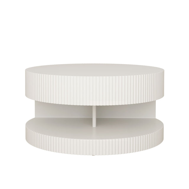 Round Coffee Table With Storage, Vertical Stripe Design - White