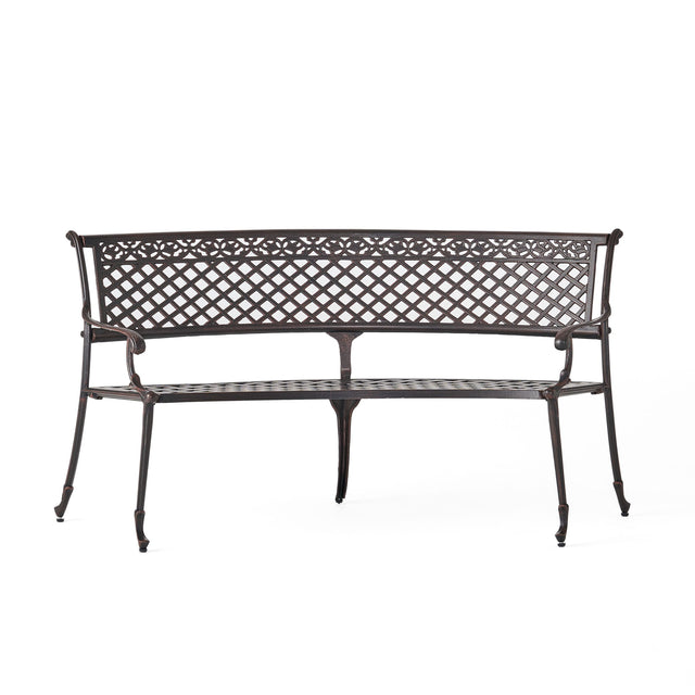 - Elegant Design: Featuring intricate diamond-cross patterns and a sophisticated copper finish, this bench adds a touch of luxury to your outdoor decor while effortlessly complementing any existing style.