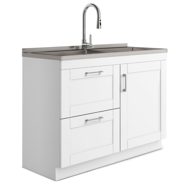 Shaker - Modern Wide Laundry Cabinet With Faucet And Stainless Steel Sink - White