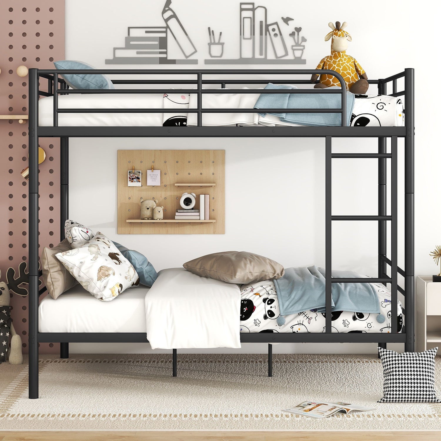 Sturdy Steel Construction Rigorously quality-tested, the bunk bed boasts a sturdy steel frame with built-in mattress slats, providing reliable support and heavy-duty strength without the need for a box spring.