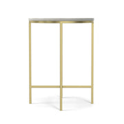 - Hand-finished powder-coated metal base with a Gold finish and White Marble tabletop.