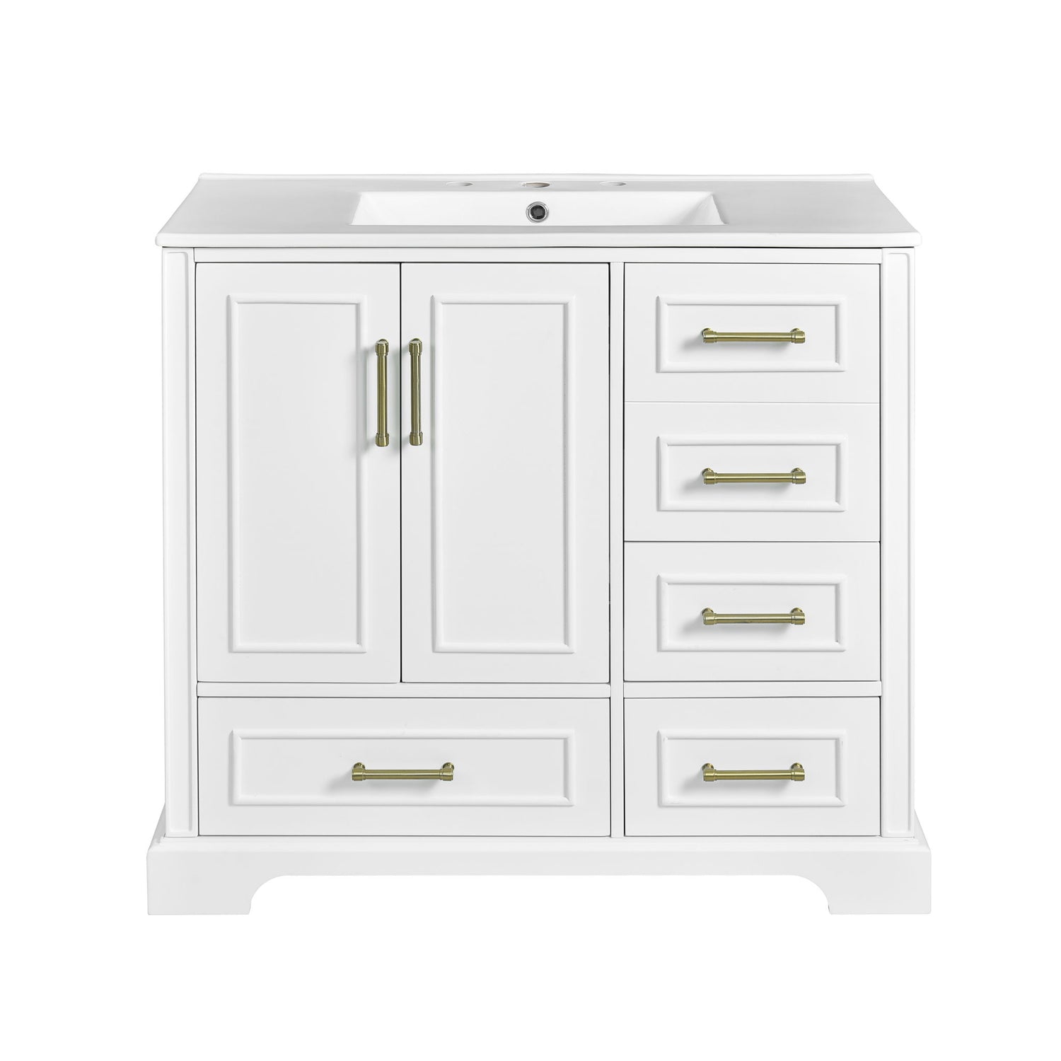 Traditional 36" Bathroom Vanity Cabinet With Sink, With Soft Close Doors And Four Drawers - White
