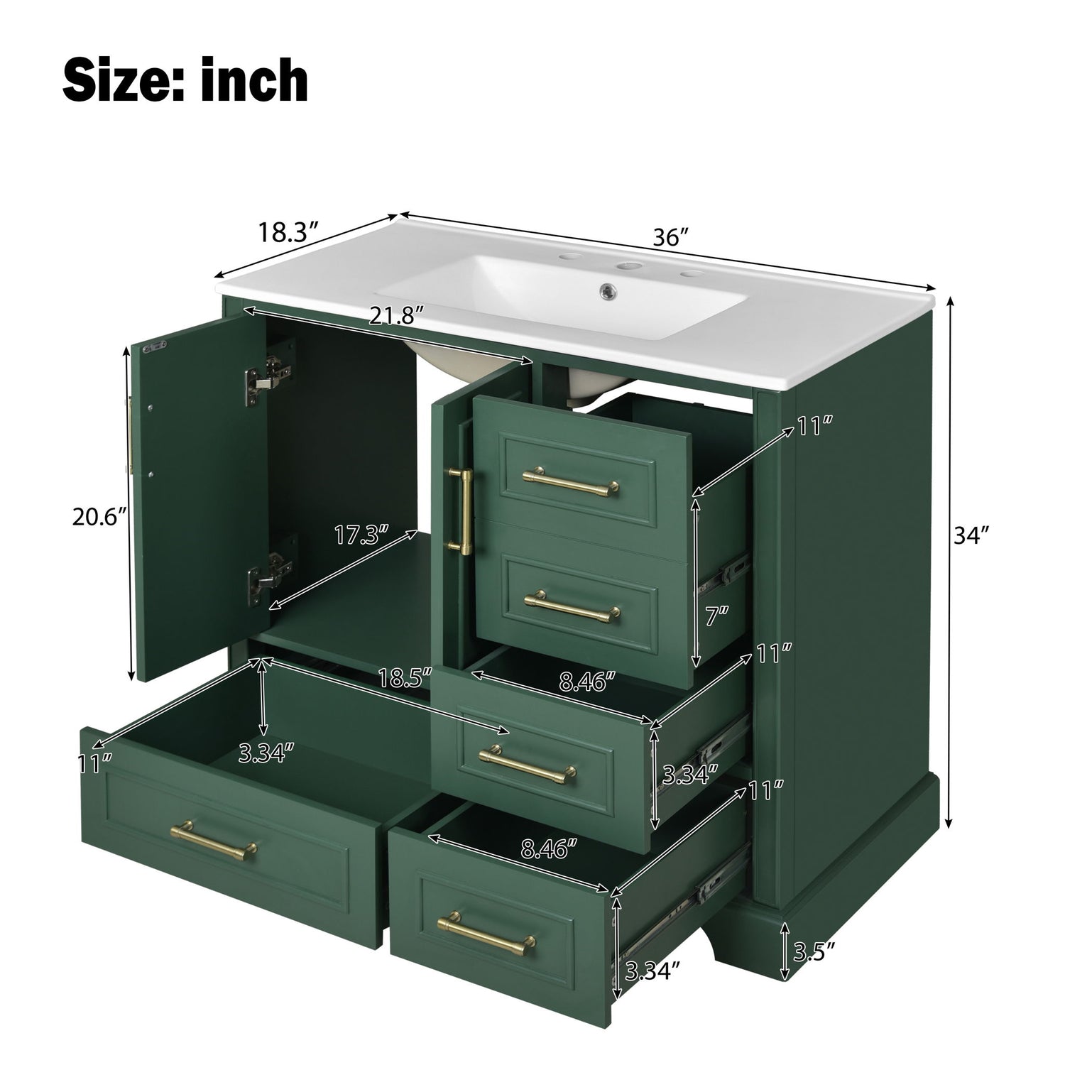 Traditional Bathroom Vanity With Sink, Soft Close Doors & Drawers, 36" - Green