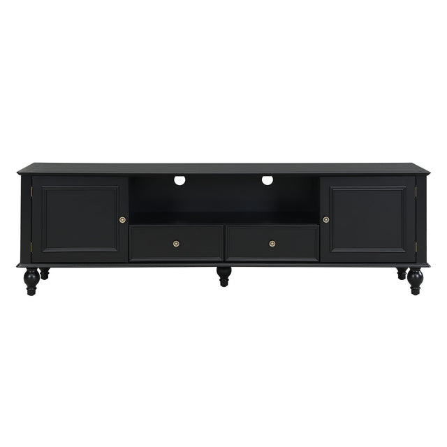 Modern TV Stand For TVs Up To 80", Entertainment Center With Open Compartment, TV Storage Cabinet With 2 Drawers, 2 Cabinets And 5 Solid Legs For Living Room - Black