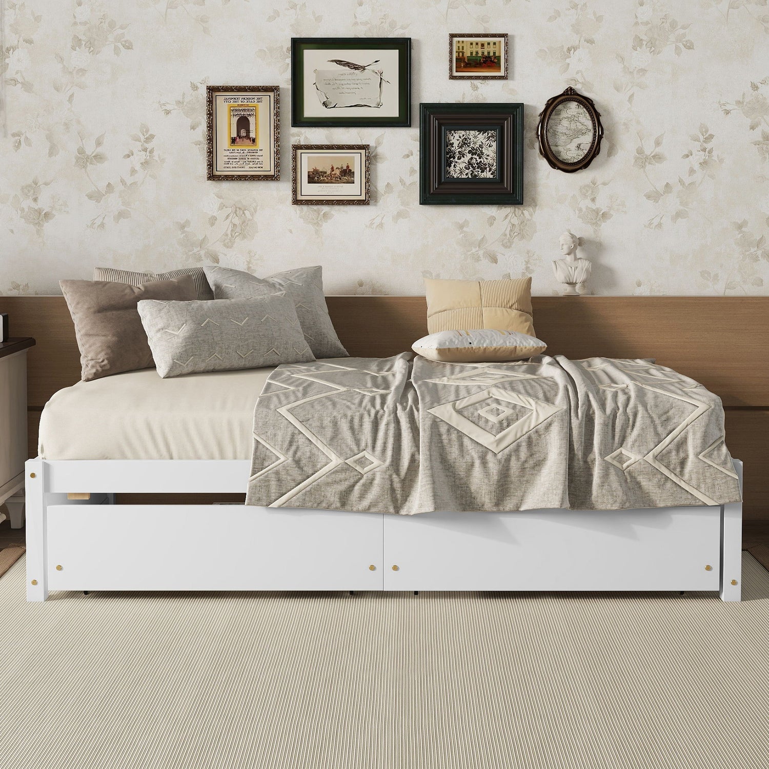 - Spacious Storage: Twin bed includes 2 large drawers for ample storage of clothes, pillows, toys, and other accessories, helping to keep the room organized.