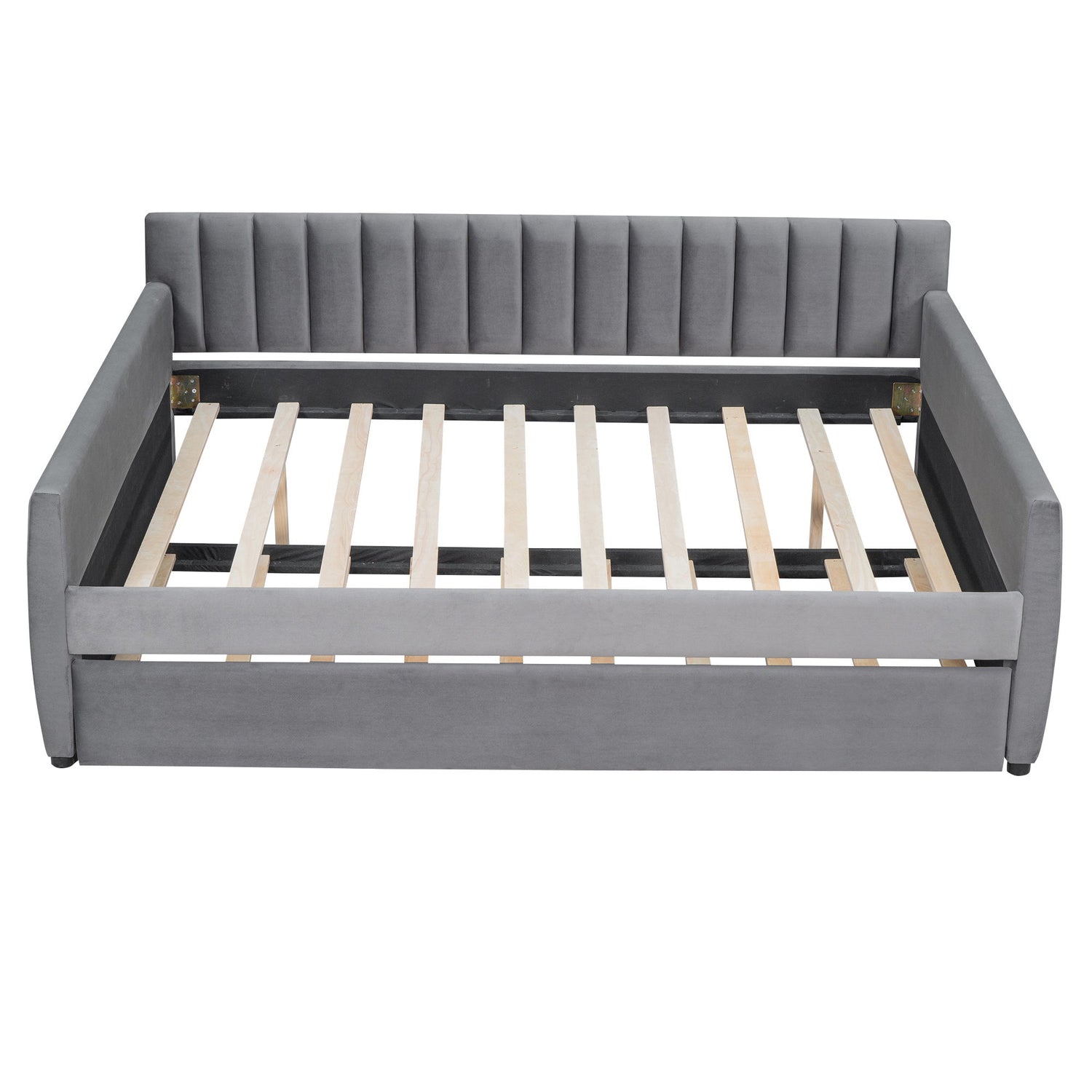 Full Size Upholstered Daybed With Trundle And Slat Support - Gray