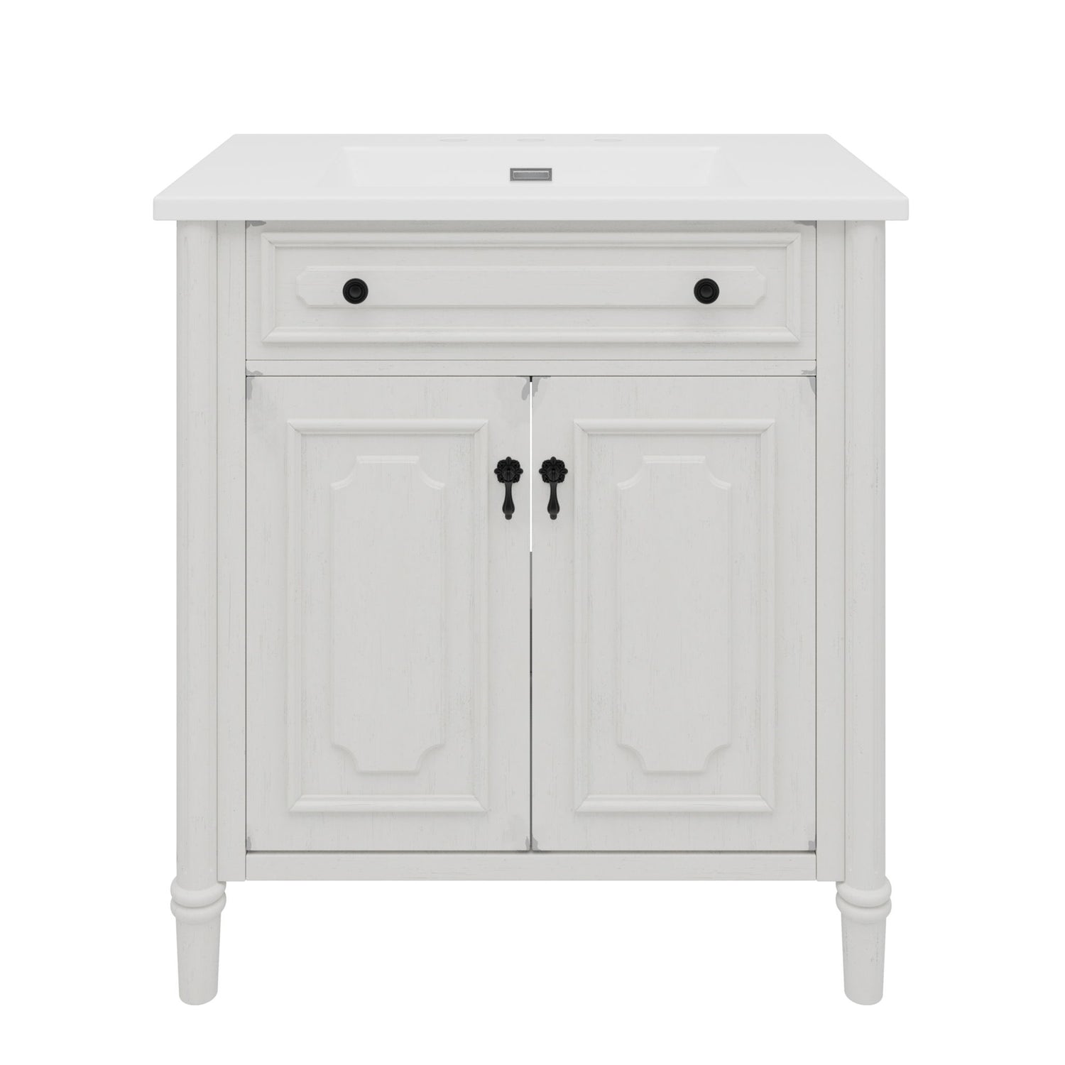 Bathroom Vanity With Sink, Cabinet With Soft Close Doors, Adjustable Shelf, Curved Profile - Ancient White